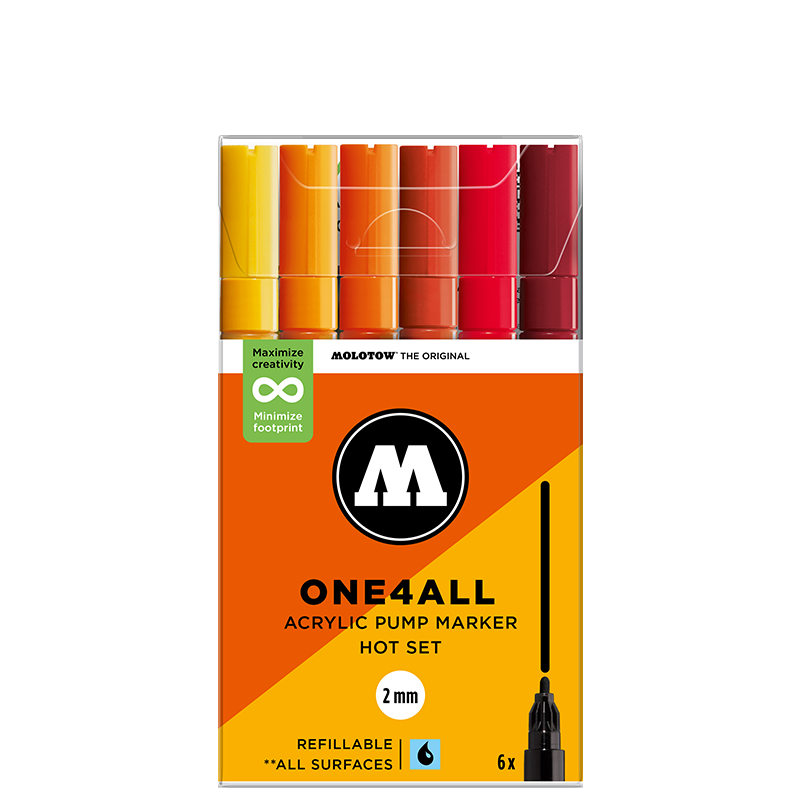Markery akrylowe MOLOTOW One4All 127HS - 2 mm - 6 szt. - hot set