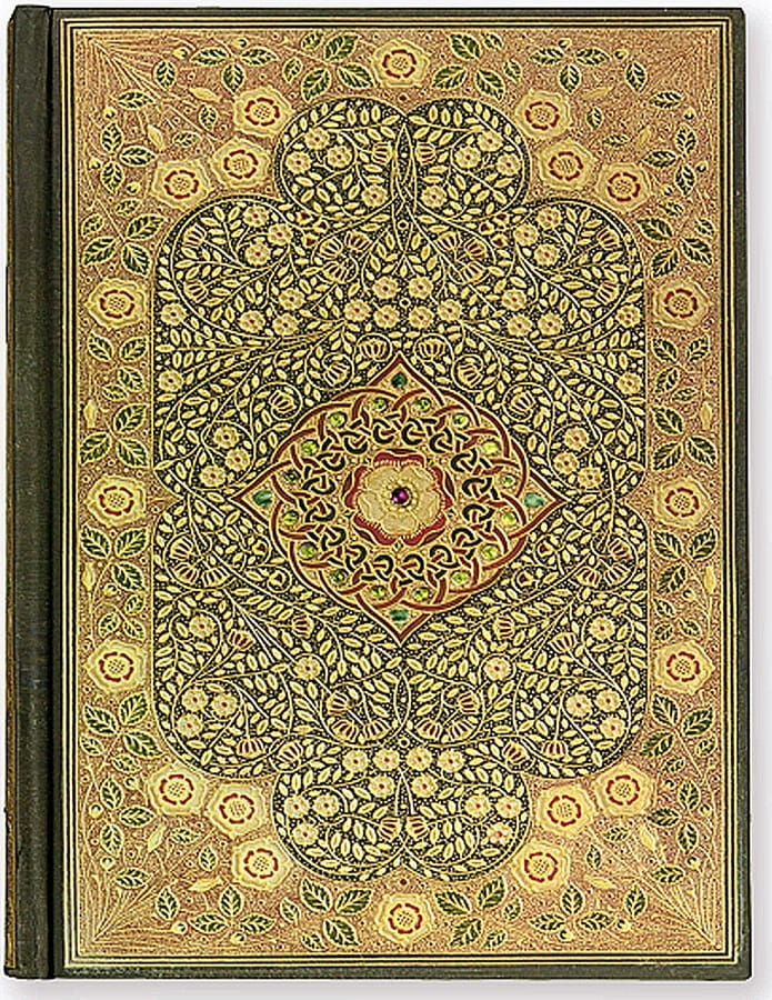 Notatnik marki Peter Pauper Press, z serii Bookbound Journal, który odwzorowuje dzieło sztuki. Notatnik w sztywnej, wytłaczanej okładce, posiada wstążkę. 160 stron, brzeg kartek zdobiony na złoto. Zadruk w linię, strony zszywane. Okładka zawiera reprodukcję londyńskiej złotej szkoły introligatorskiej z 1905 roku.