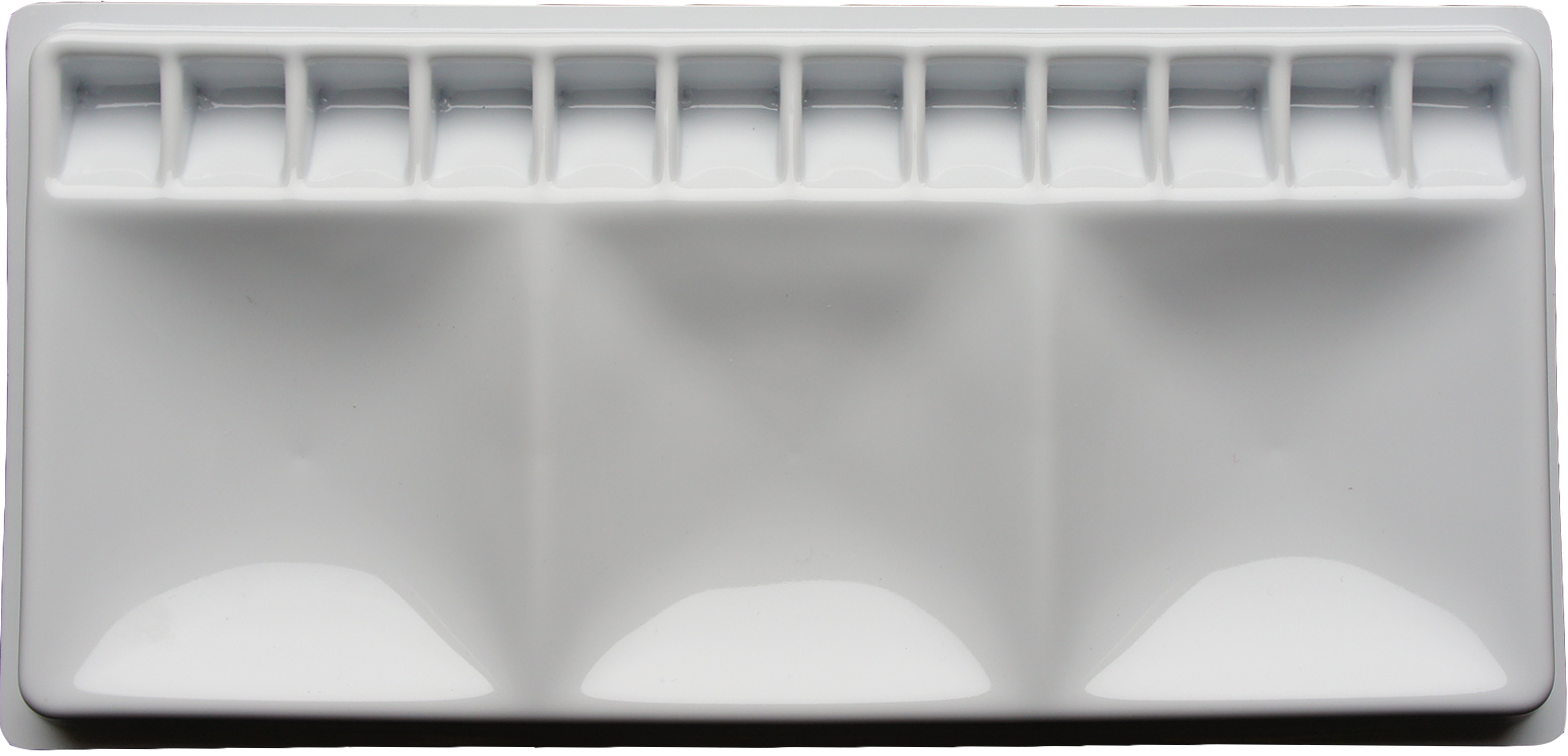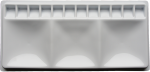 Paleta malarska plastikowa prostokątna. 12 małych kwadratowych komór + 3 duże komory do mieszania kolorów. Idealna do farb akwarelowych.