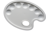 Paleta malarska plastikowa owalna. 7 okrągłych komór. Idealna do farb akwarelowych, akrylowych i temper.