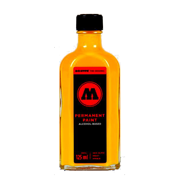 Uniwersalny, permanentny i szybkoschnący tusz do markerów Molotow. Tusz na bazie alkoholu, mocno kryjący o lekkim połysku. Do stosowania wewnątrz i na zewnątrz pomieszczeń, na różnych powierzchniach: metalu, plastiku, szkle, kartonie, papierze itp.
